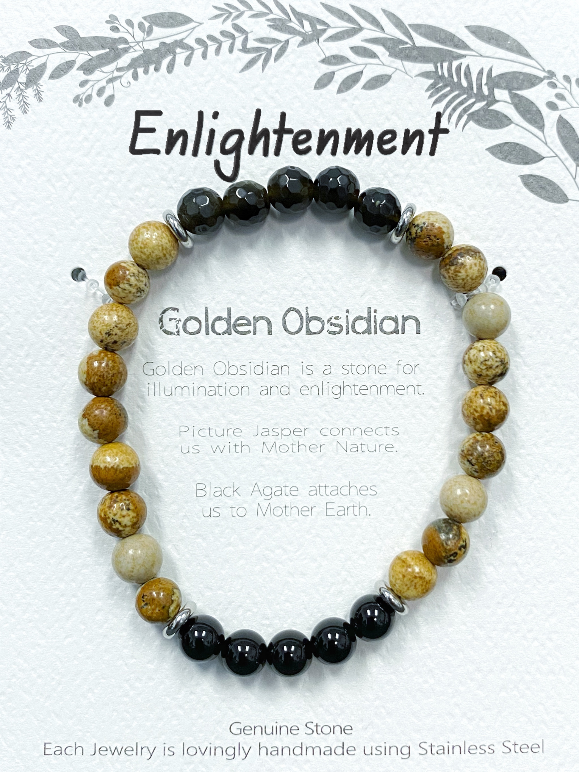 Embrace the transformative energy of Golden Obsidian, Picture Jasper, and Black Agate and elevate your spirit with Om Gallery's Stone Bracelet. Whether you're seeking protection, creativity, or simply a touch of natural beauty, this bracelet is sure to inspire and uplift you.