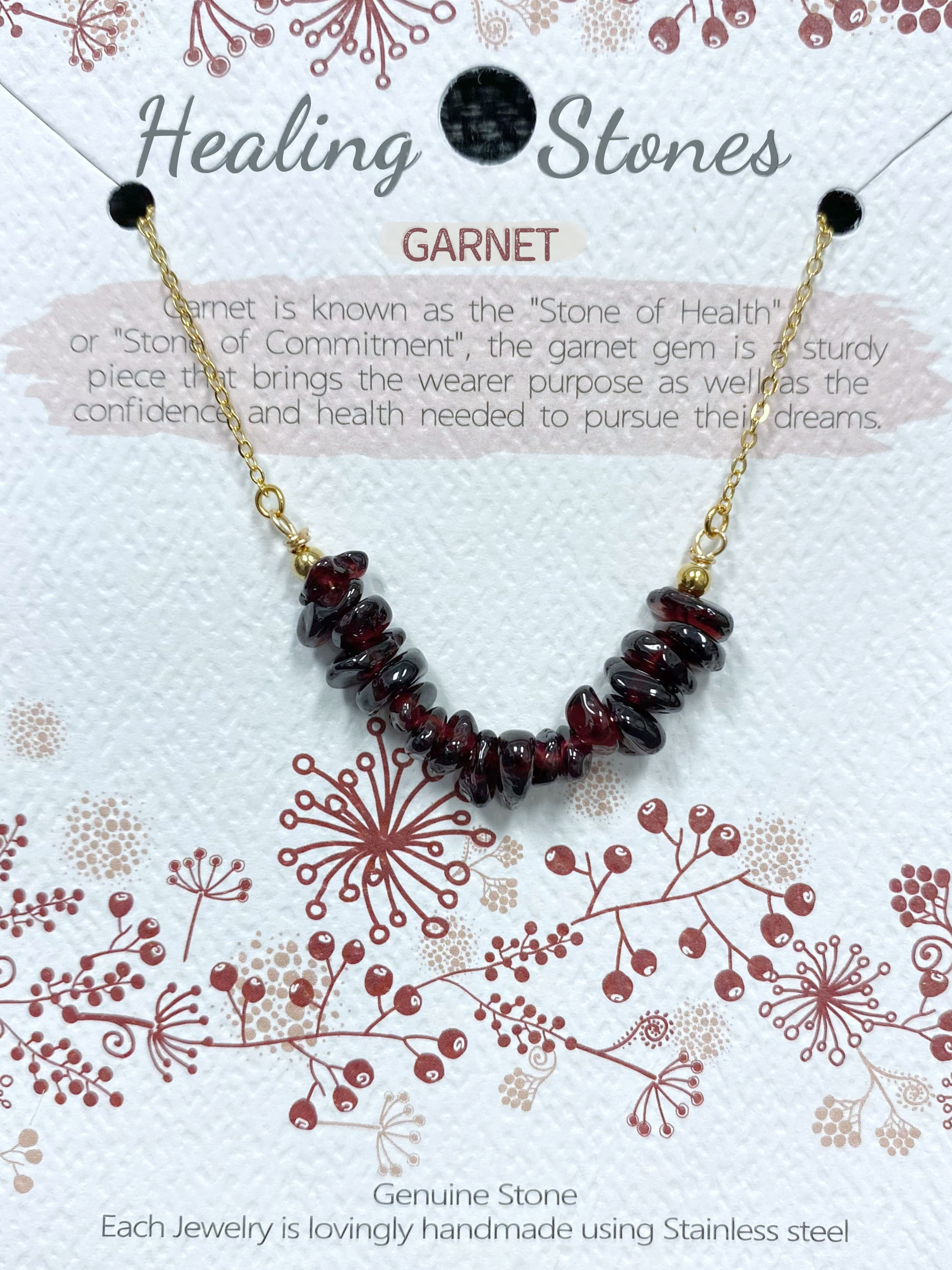 Embrace the empowering energy of Garnet and elevate your spirit with Om Gallery's Healing Stones Necklace. Whether you're seeking motivation, vitality, or a touch of natural beauty, this necklace will inspire and invigorate.