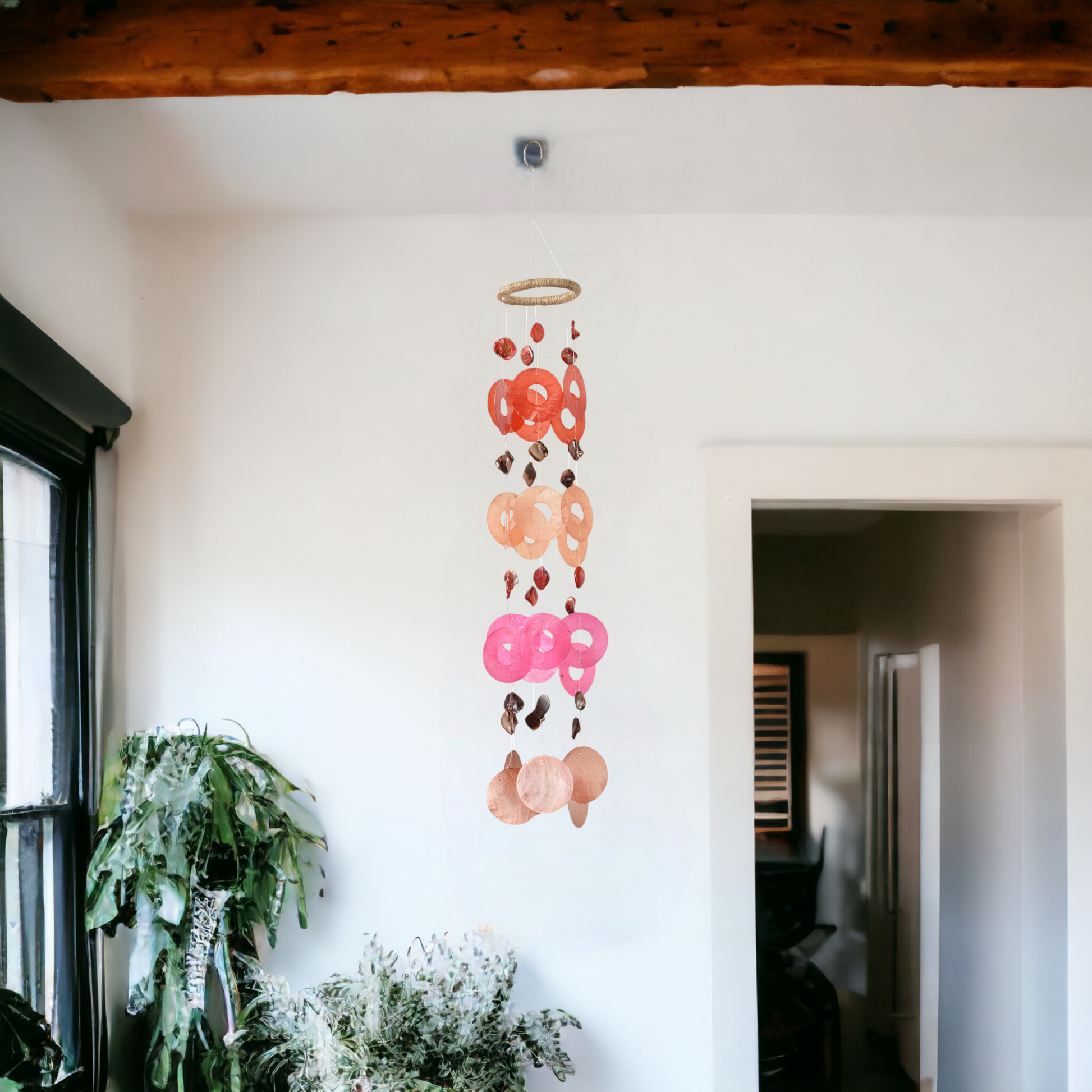 Nothing says "fun beachy vibes" like colorful capiz chimes! Designed by Om Gallery and exquisitely crafted by our artisan partners in the Philippines. This windchime is meticulously handcrafted out of capiz shells.