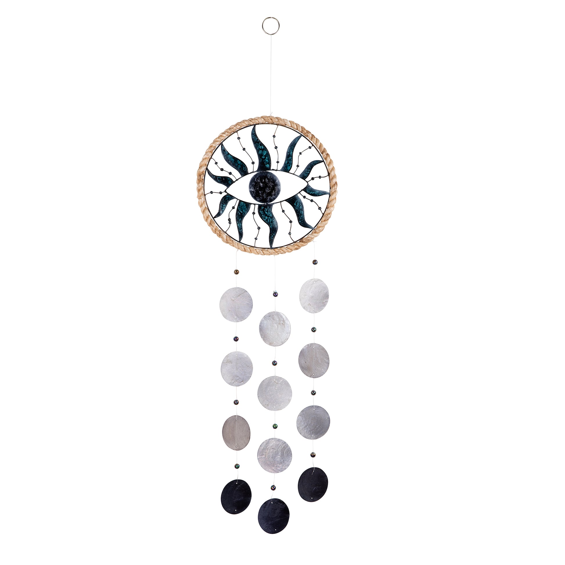 Beautiful evil eye chime handmade with capiz and beadwork.