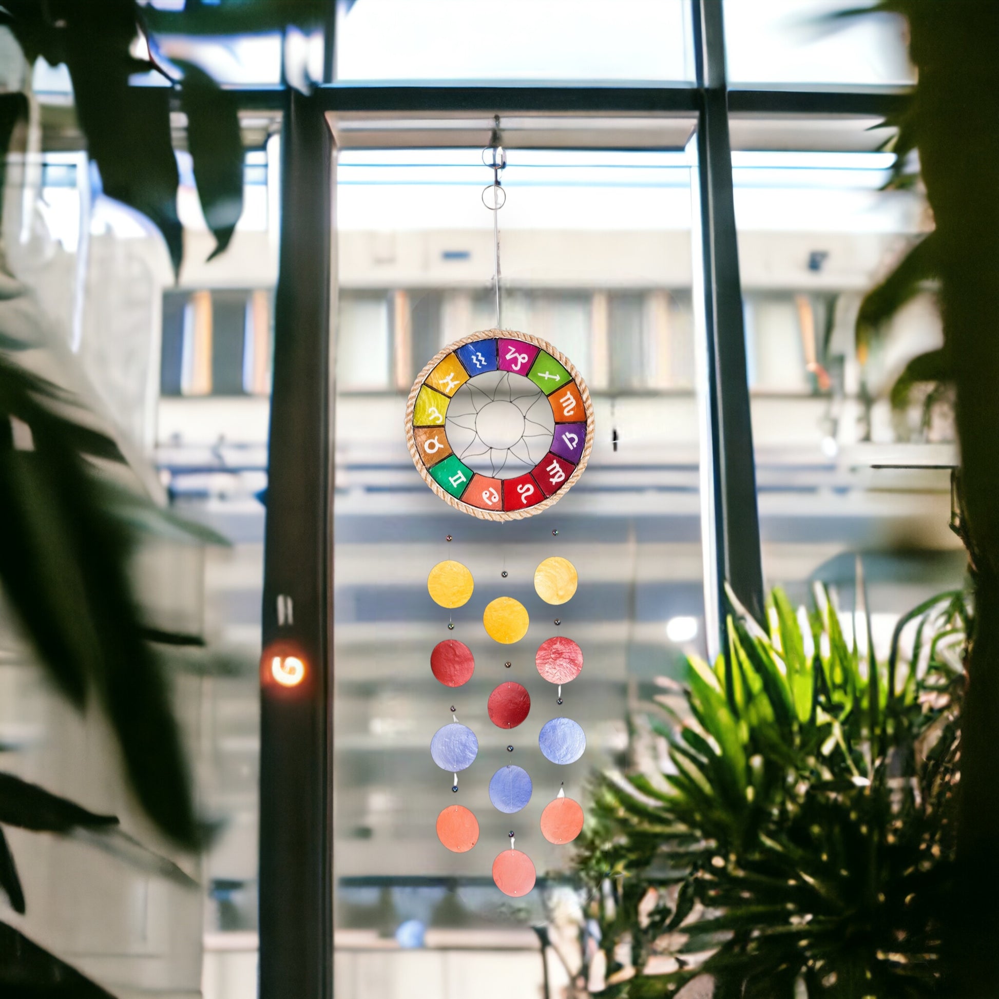 Beautiful zodiac chime handmade with capiz and beadwork.