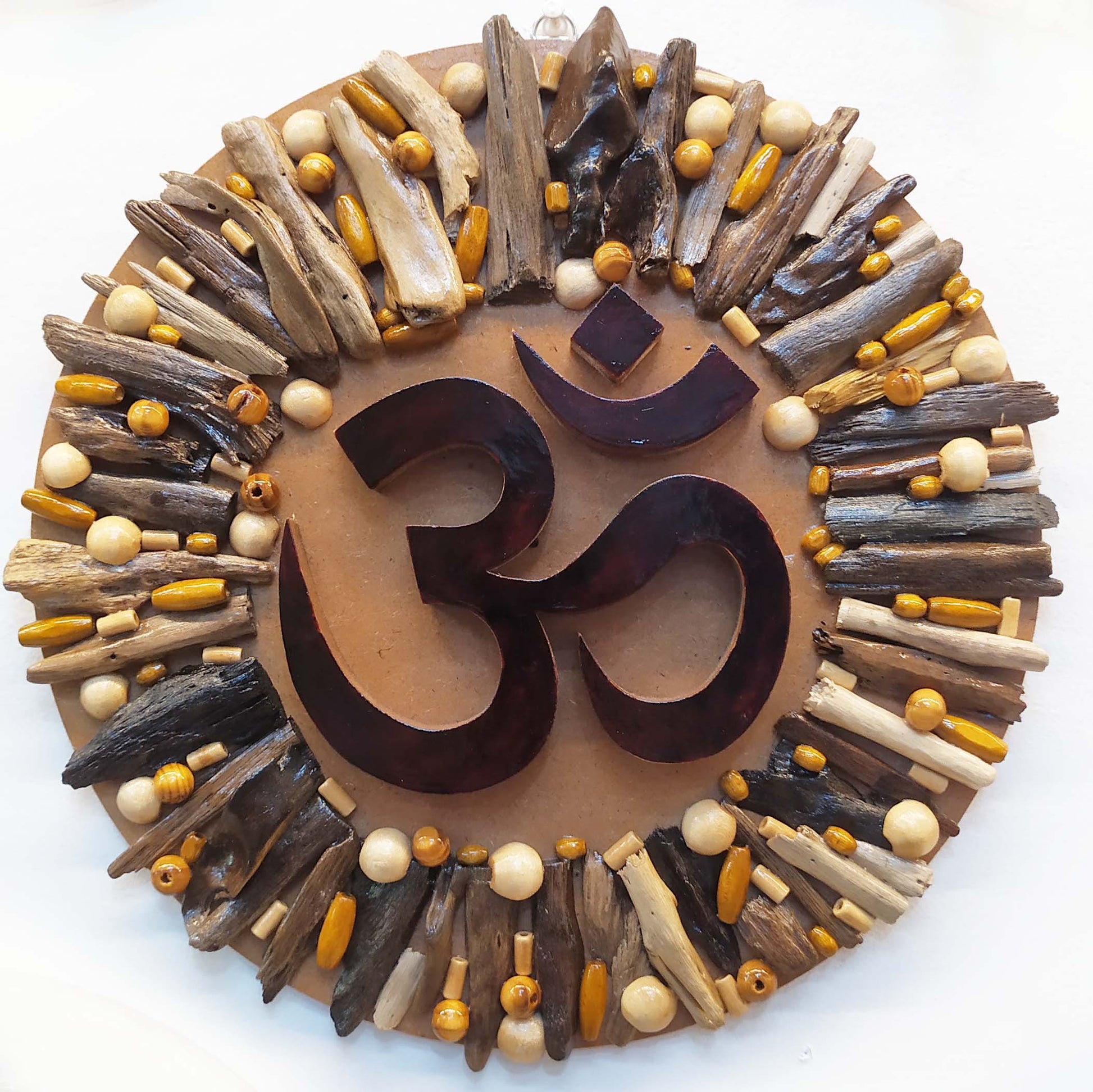 Handmade Driftwood Round Wall Art. Designed and Crafted by Om Gallery Artisans. Made in the Philipinnes. Dimensions: 12" x 12.5"