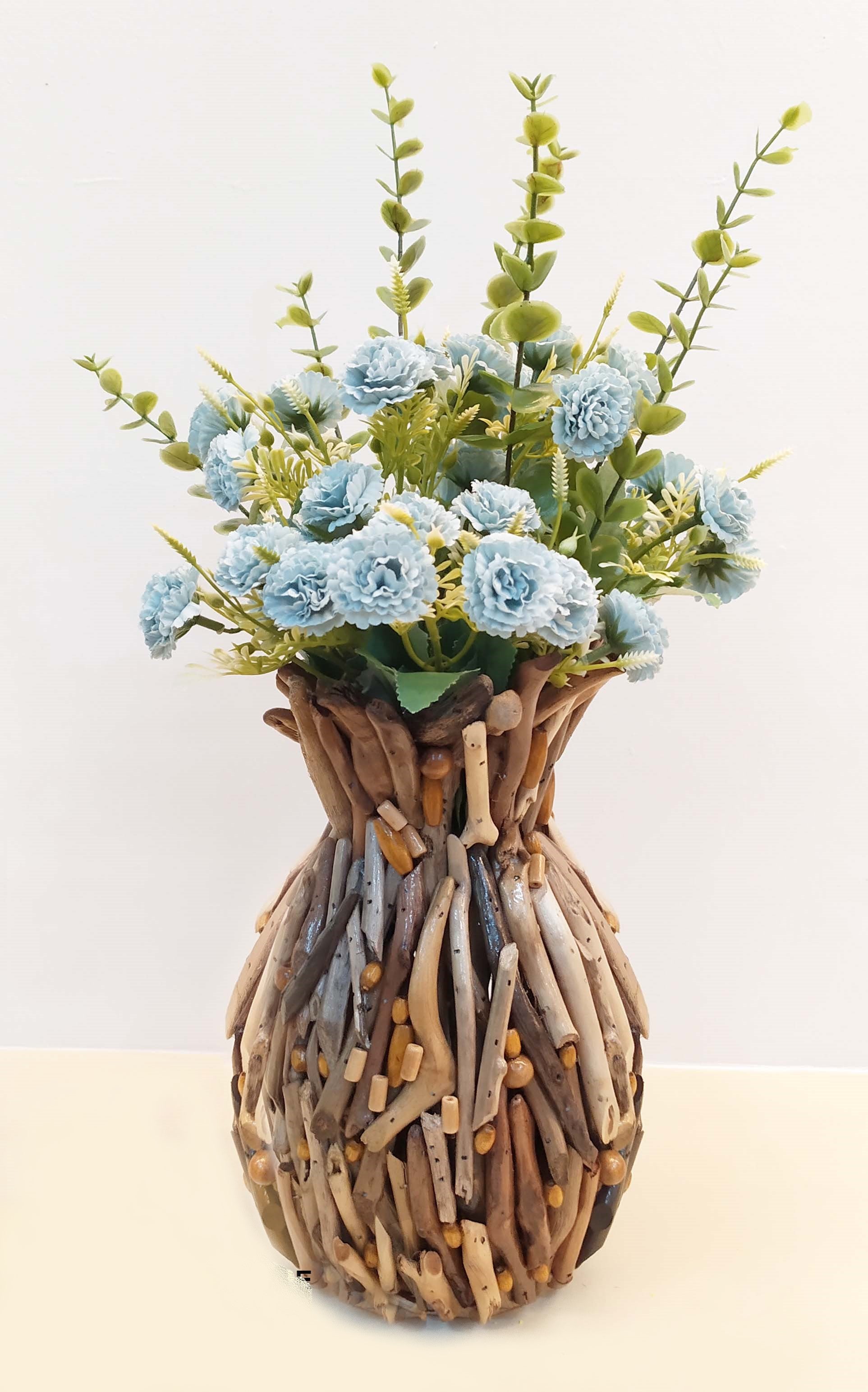 Handmade Driftwood Decorative Vase. Designed and Crafted by Om Gallery Artisans. Made in the Philipinnes. Dimensions: 12" x 6"