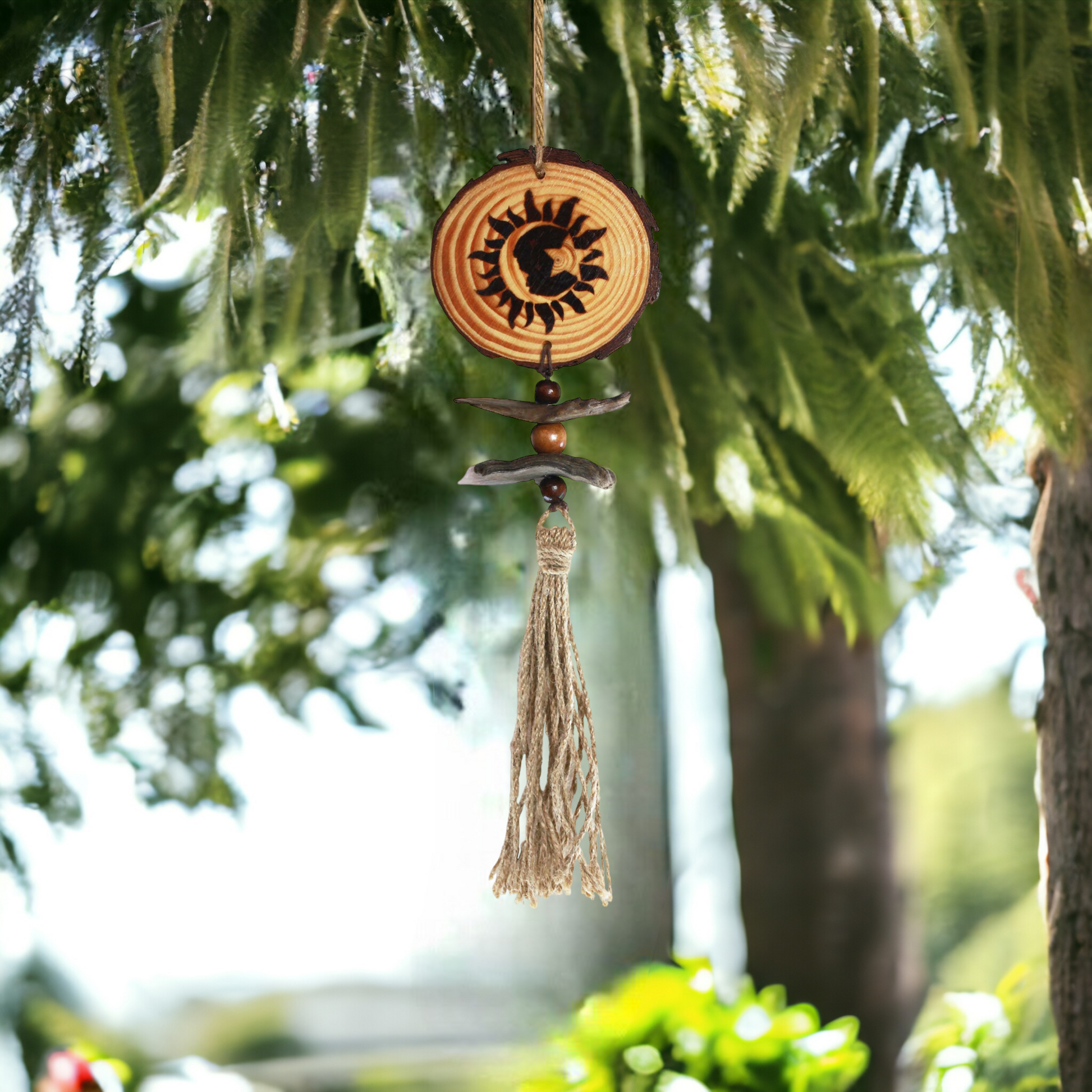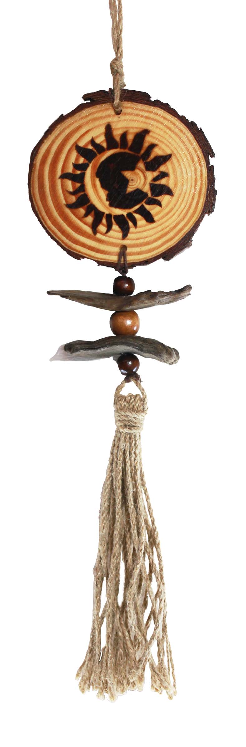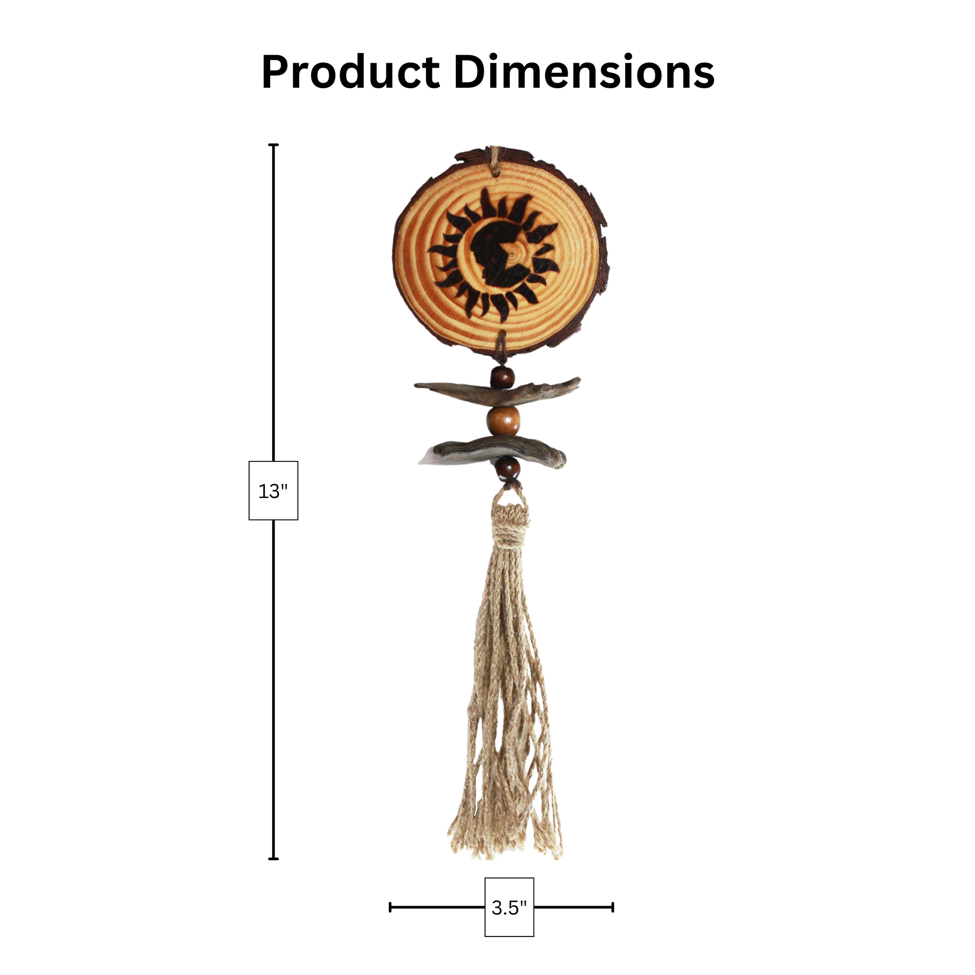 Whether hung indoors in a meditation room, study, or living space, or displayed outdoors in a garden, patio, or porch, this hanging pine slice evokes a sense of awe and wonder. Its versatile design effortlessly complements various decor styles, from modern to bohemian.