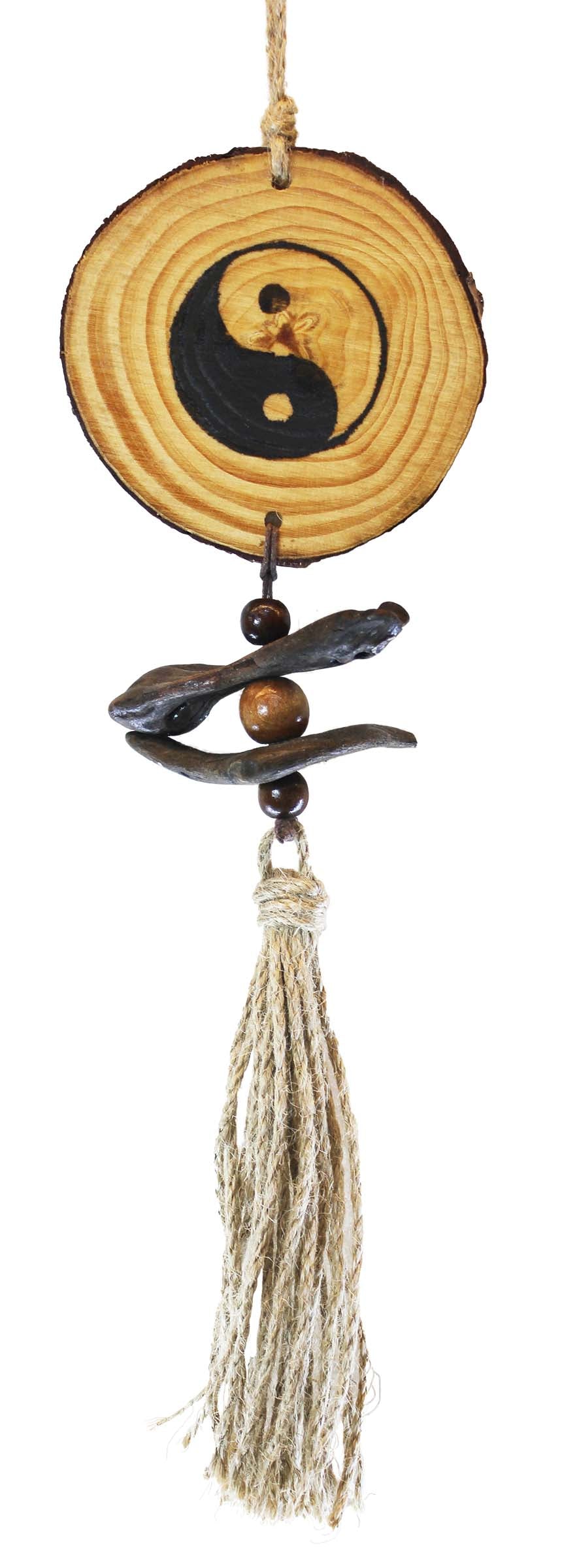Hanging Yin Yang Pine Slice Ornament - 13"x3.5"
