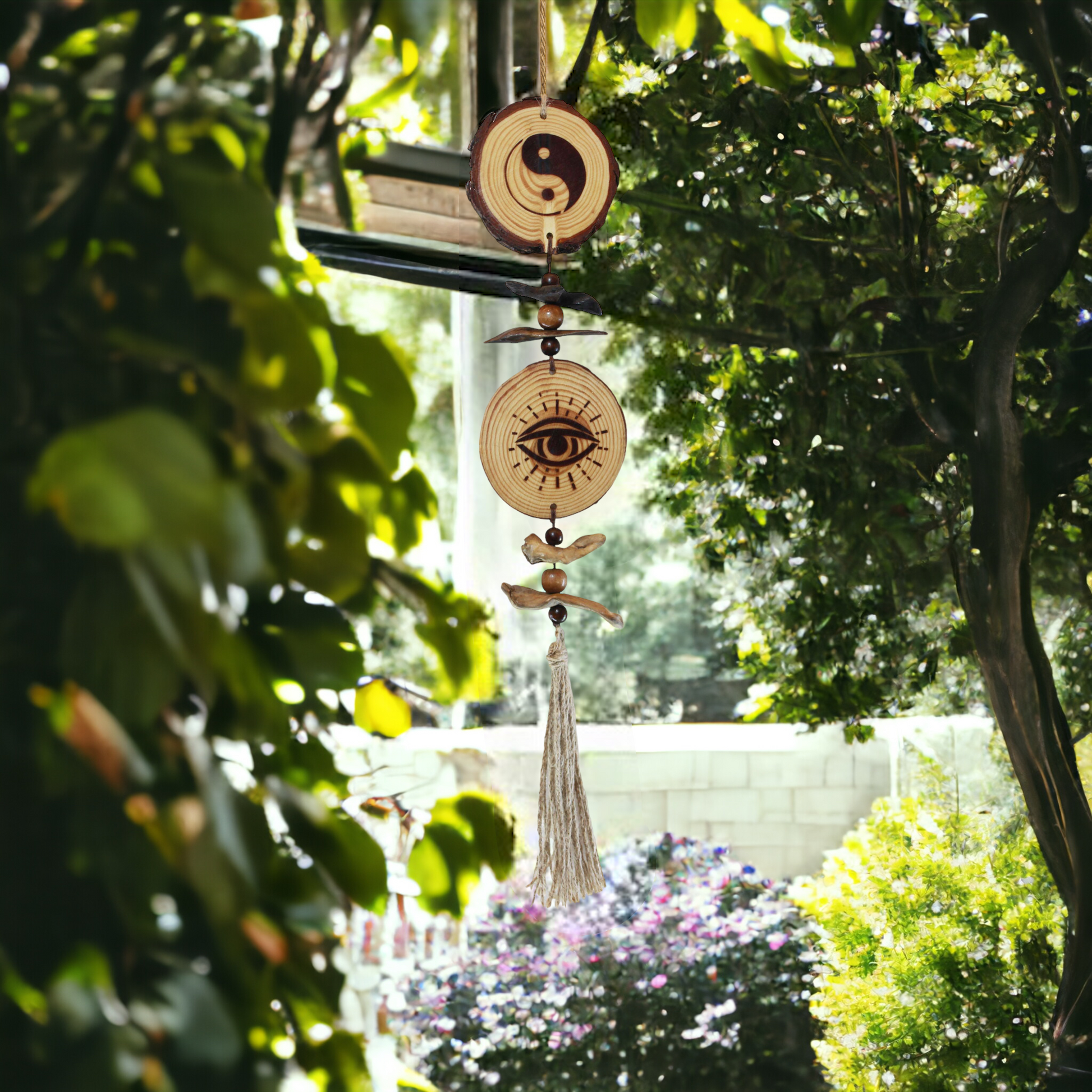 Double Yin Yang and Mod Eye Hanging Pine Slice