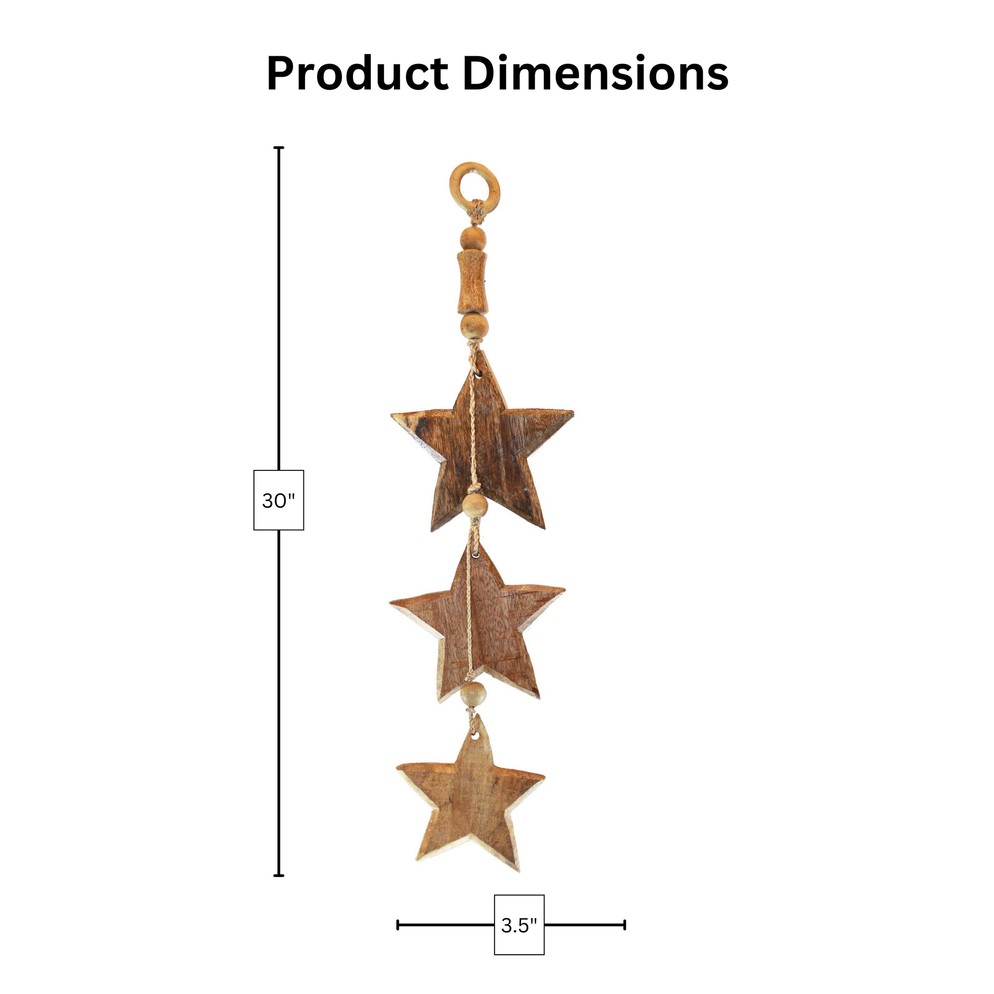 Om Gallery's Three Stars Ornament is a celestial-inspired accent crafted from natural driftwood. This enchanting piece features three intricately designed stars, each radiating with celestial charm. Measuring 3.5 inches in width and 30 inches in height, this ornament adds a touch of celestial beauty to both indoor and outdoor spaces.