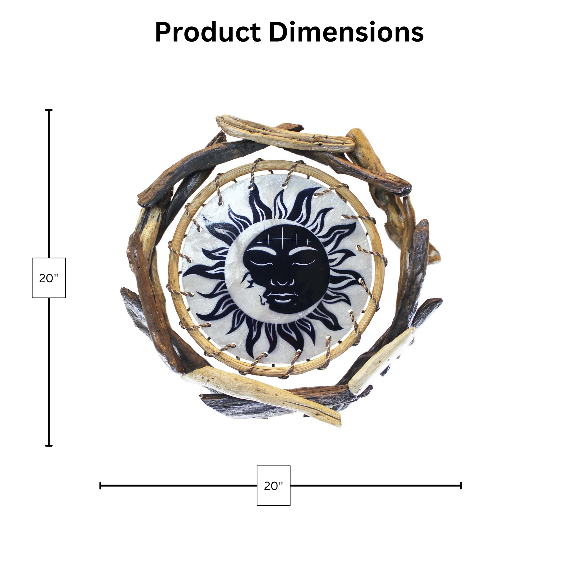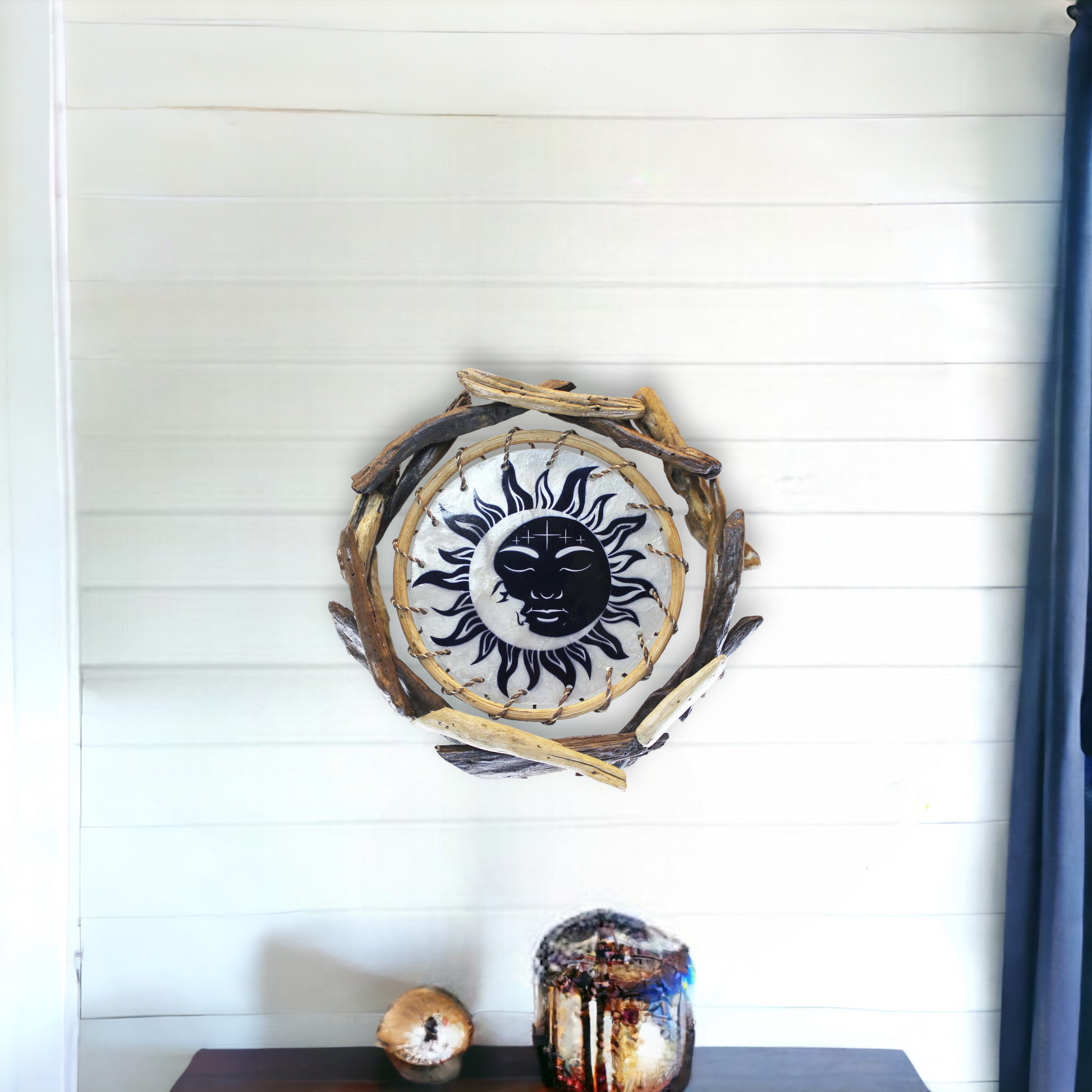 Each Celestial Rattan and Driftwood Wall Art is a true work of art meticulously handcrafted by skilled artisans in the Philippines who expertly combine rattan and weathered driftwood. The combination of natural materials and delicate capiz shell mosaic creates a mesmerizing focal point that evokes the wonder and mystery of the cosmos.