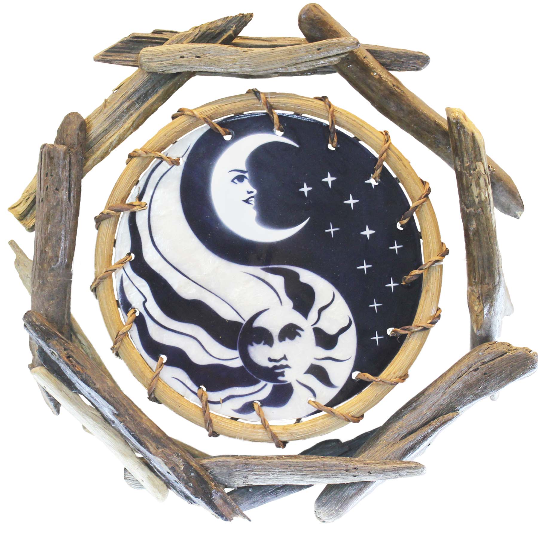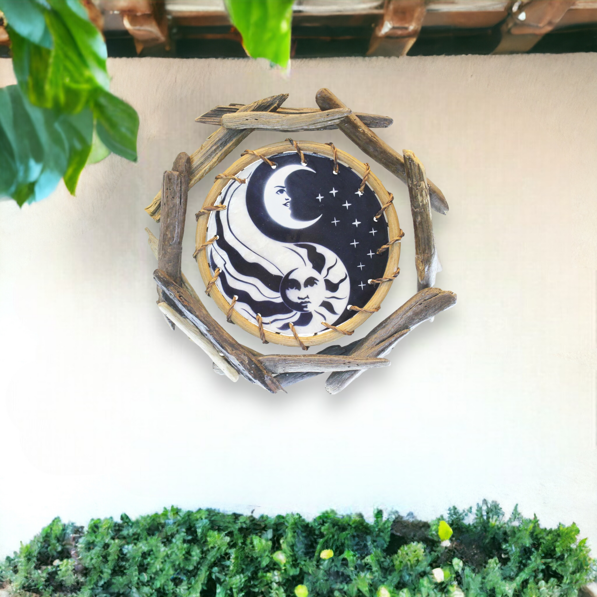 Yin Yang Sun and Moon - Rattan and Driftwood Wall Art