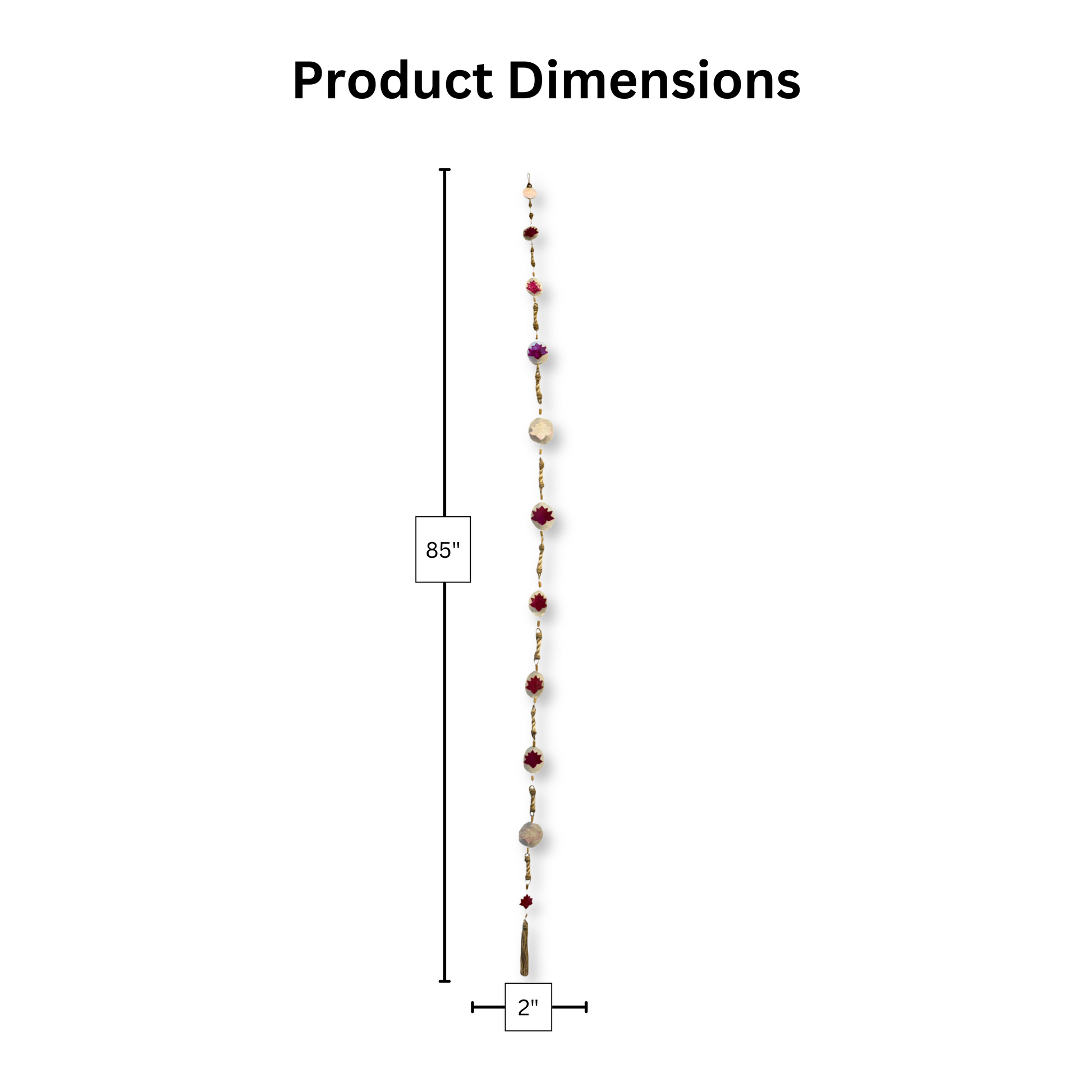 Whether hung indoors in a living room, bedroom, or meditation space, or displayed outdoors in a garden, patio, or porch, this garland serves as a serene reminder of spiritual growth and enlightenment. Its versatile design effortlessly complements various decor styles, from bohemian to minimalist.