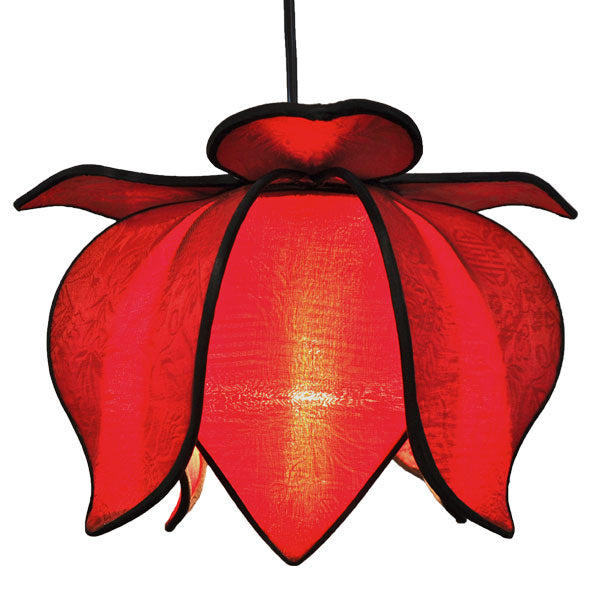 Om Gallery's Silk Lotus Lamps bridge the delicate balance between fashion and functionality. Handmade by artisans, each silk hanging lamp has a unique character.