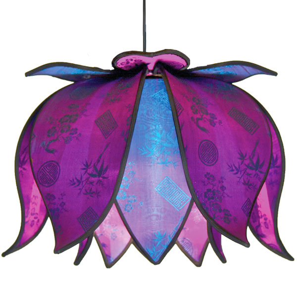 Om Gallery's stunning Hanging Flowering Lotus lamp is the perfect accent light for any room of the home or office. 100% handmade with fine taffeta silk by skilled Vietnamese craftspeople, the hanging Flowering Lotus lamp is made with the highest fair trade principles in mind. Combining the beauty of the lotus -- a symbol of peace, purity, holiness and harmony -- and the usefulness of a hanging light, we're sure you'll love the Om Hanging Flowering Lotus lamp! Made with a durable steel frame and high-quality silk. Hangs from a 12' black lighting cord.