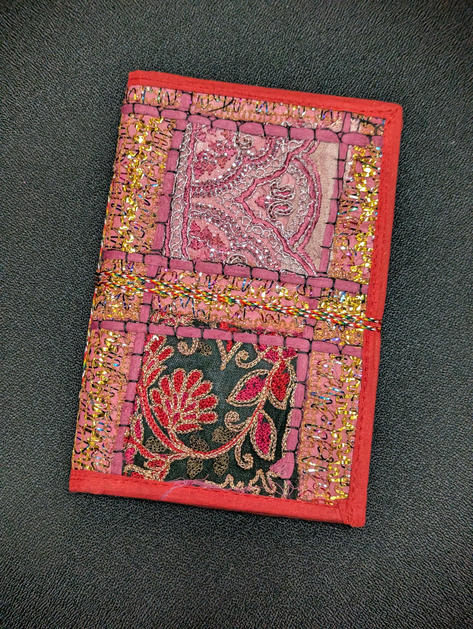 Its stunning patchwork cover sets it apart, adorned with an array of vibrant fabrics and textures meticulously handstitched together in India. Richly embroidered designs and upcycled Rajasthani silk patchwork tell a story, adding a touch of personality and charm to your writing companion. The intricate threading adds depth and dimension, creating a tactile experience.