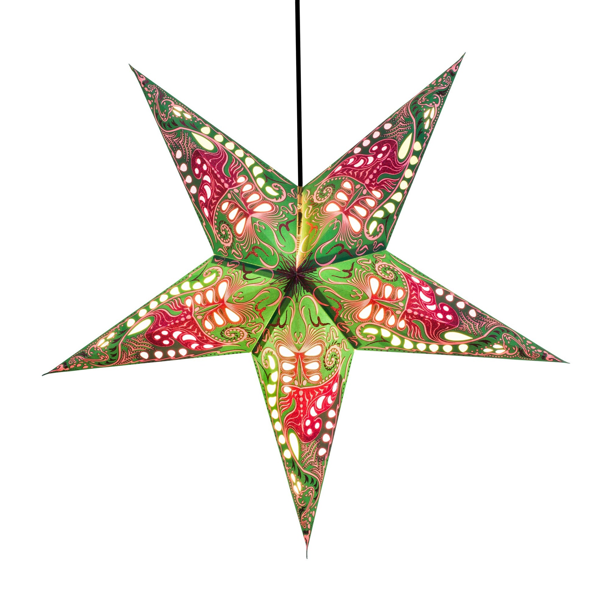 Our StarLights are handcrafted in India by partners of the Om Gallery. They are available in many dazzling patterns. Made with 100% recycled materials, these hanging lanterns create ambiance and a clever accent lighting. "Create Your Om"!