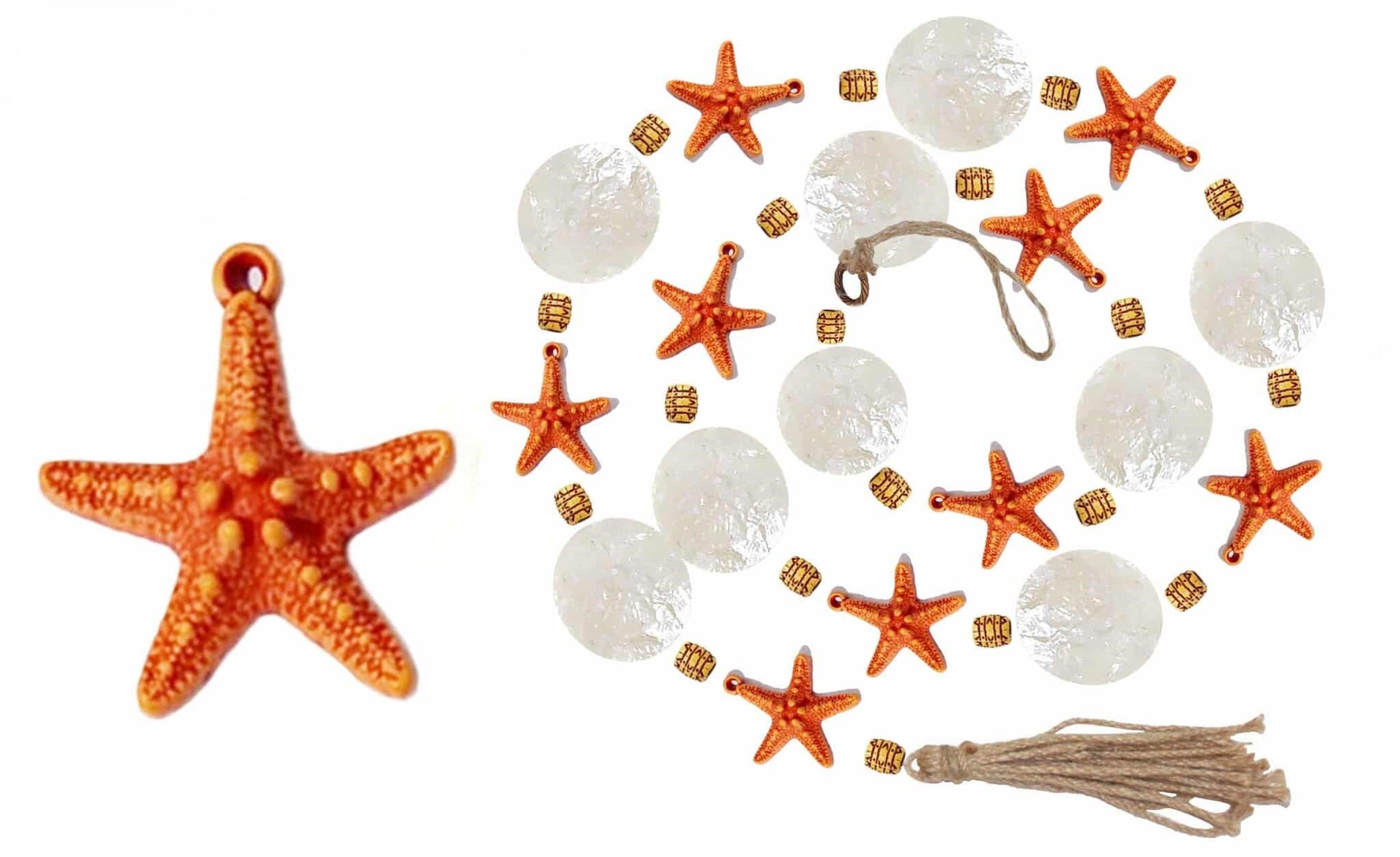 Handmade Capiz and Charm Garland. Designed and Crafted by Om Gallery Artisans. Made in the Philipinnes. Dimensions: 72" x 2"
